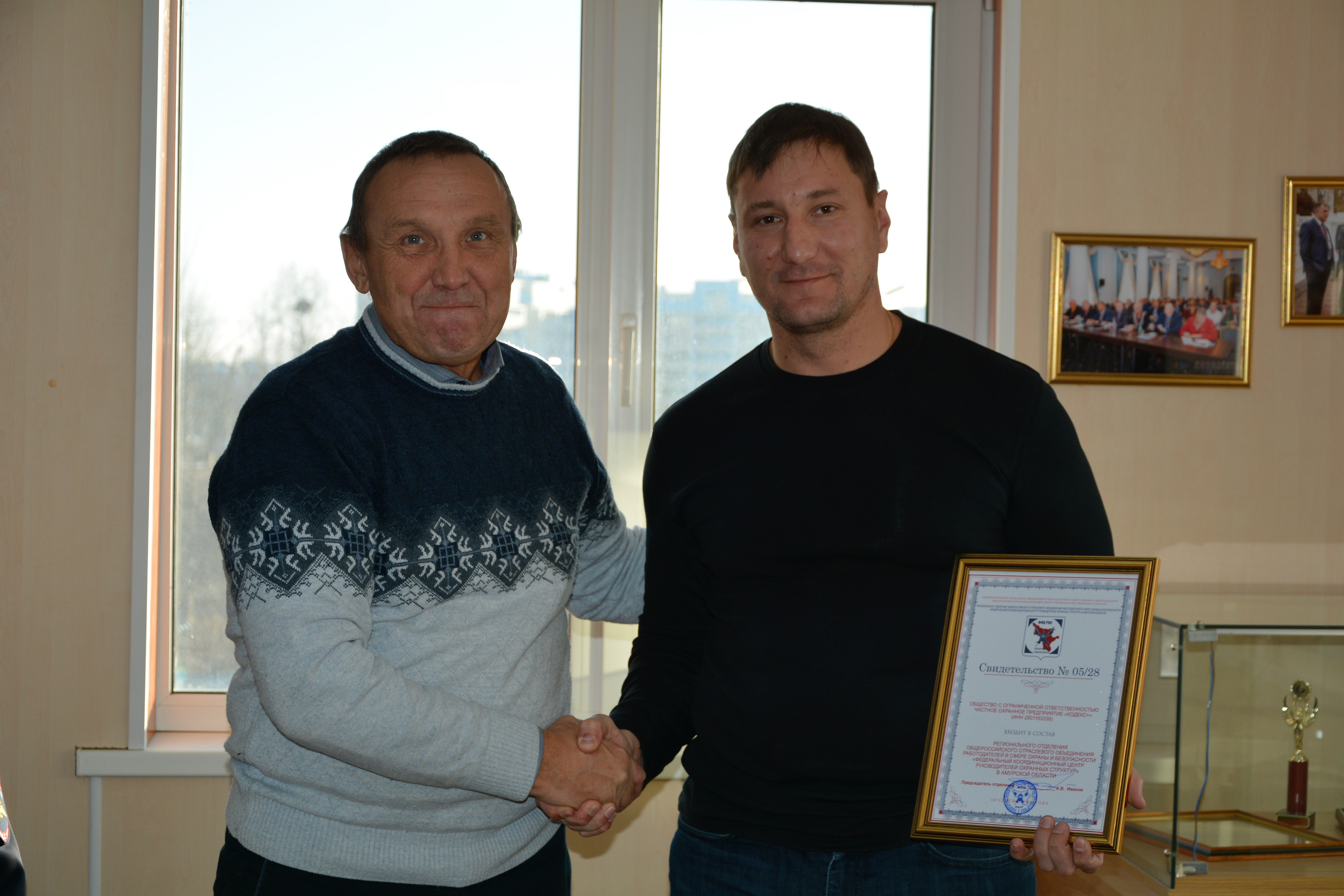 В завершение встречи Андрей Иванов торжественно вручил представителям ЧОО, входящим в состав РООООР ФКЦ РОС в Амурской области, свидетельства о членстве.