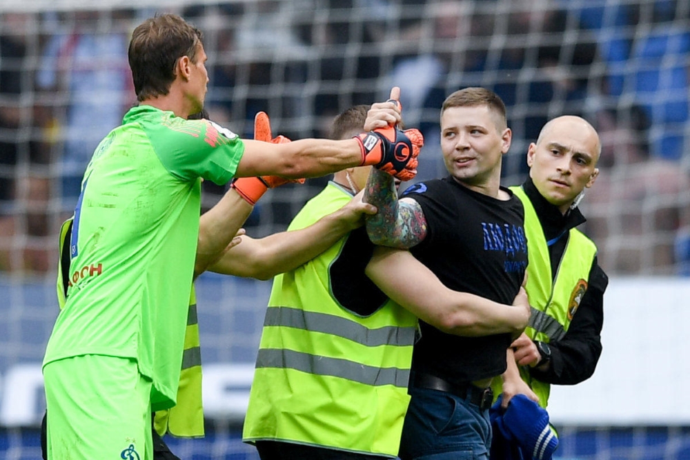 Уже после свистка фанаты бело-голубых попробовали организовать прорыв на поле – все-таки исторический момент. Шестерым это удалось. Болельщики побежали делать селфи и фотографироваться с игроками. Выводить посторонних с газона пришлось с помощью сотрудников компании СТРОНГо, но делалось это исключительно вежливо. В соответствии с атмосферой.