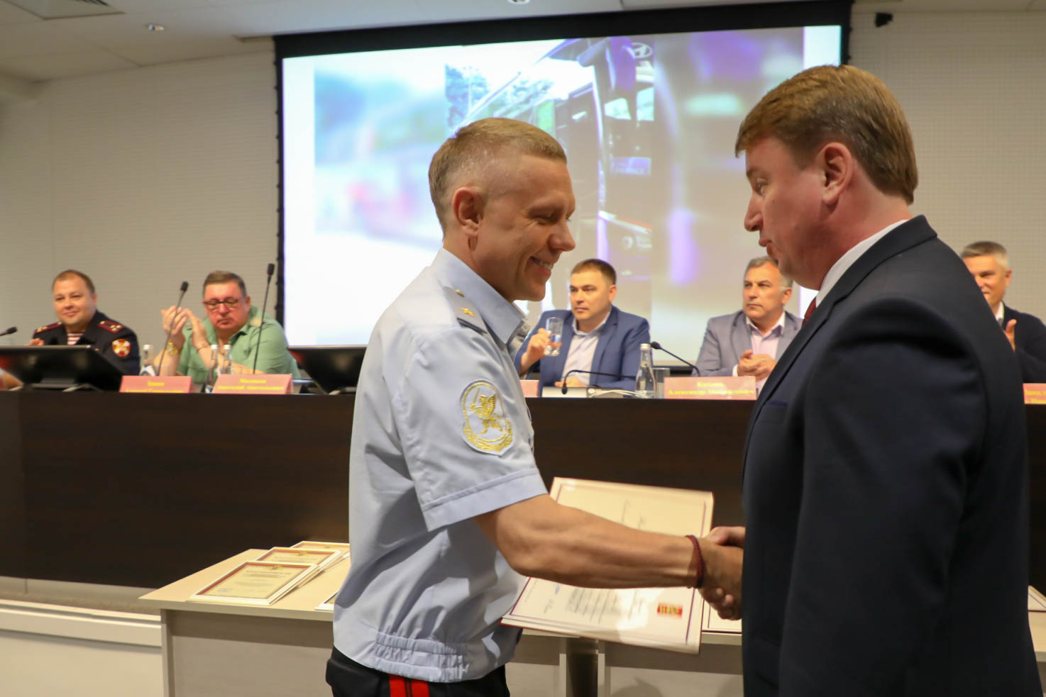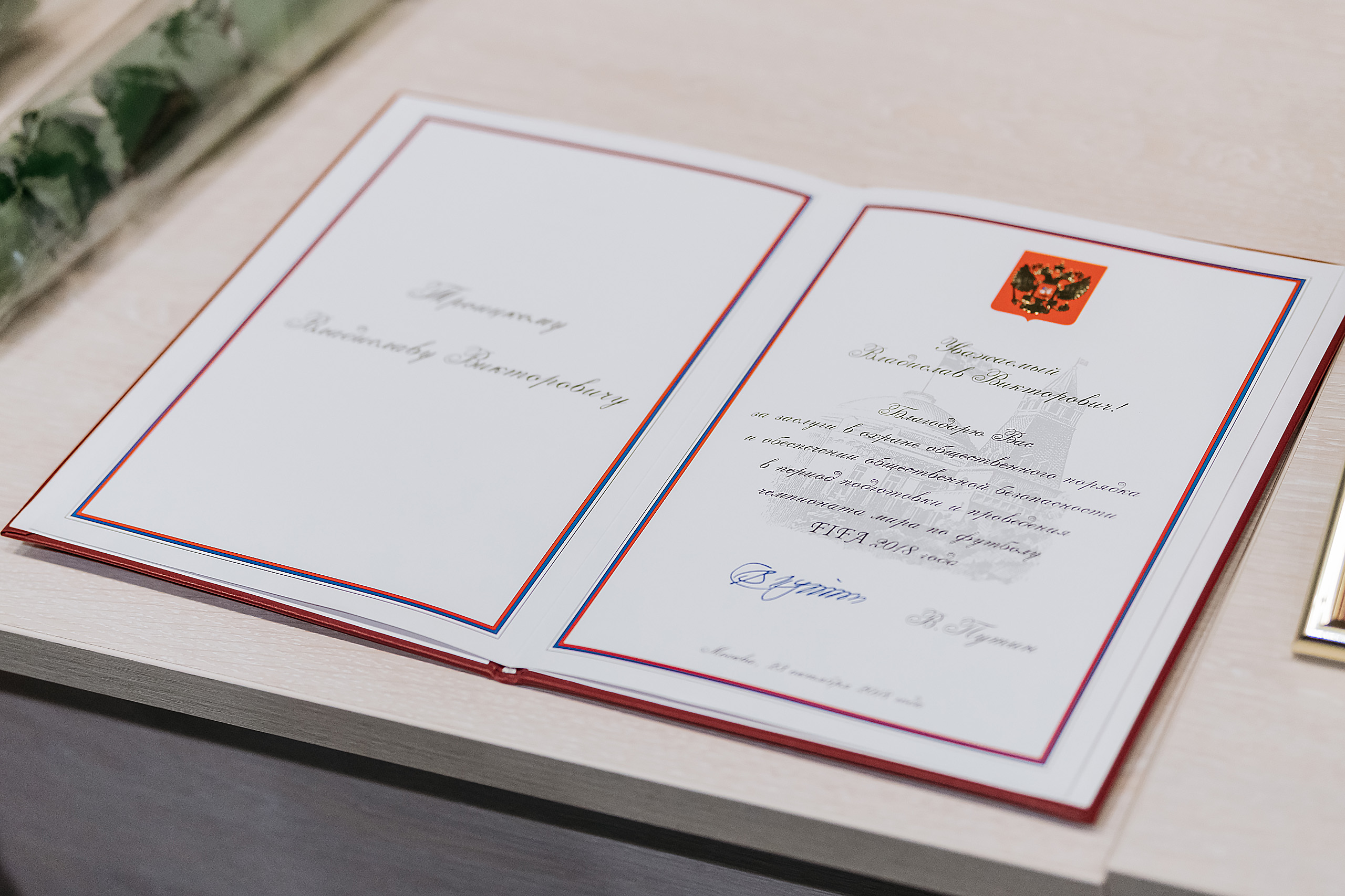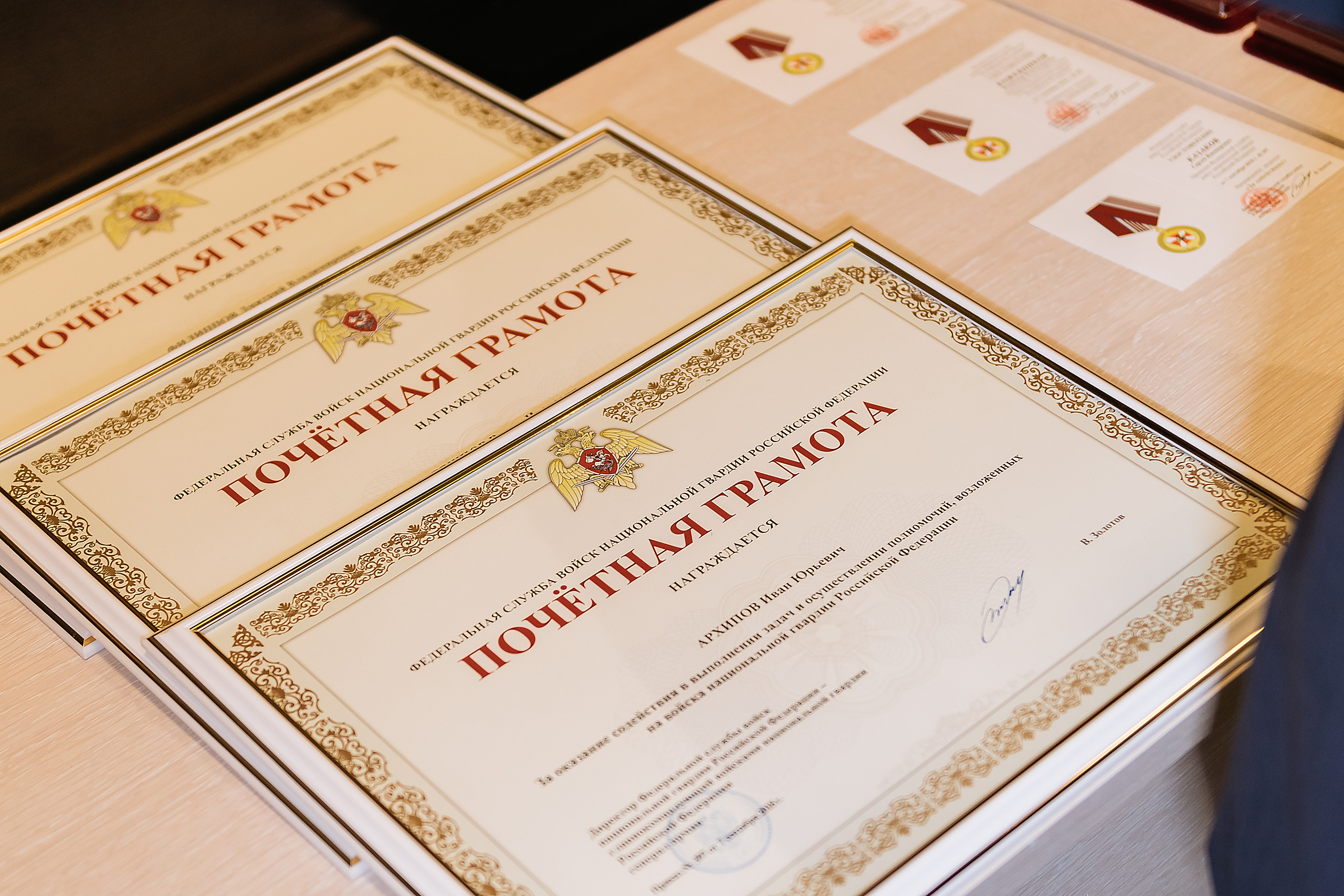От директора Федеральной службы войск национальной гвардии Российской Федерации генерала армии Виктора Золотова лучшим сотрудникам нашей компании генерал-майор Алексей Зинин вручил медали «За содействие»:Сергею Казакову, Николаю Карнауху, Владимиру Кожевникову, Данилу Толокнову, почетные грамоты: Ивану Архипову, Вадиму Бешнову, Дмитрию Филиппову и благодарности: Фёдору Батракову, Валентину Киливнику, Сергею Шпилевому. «Благодаря слаженной совместной работе правоохранительных органов и сотрудников вашей организации удалось не допустить серьёзных правонарушений и выполнить все поставленные задачи по обеспечению безопасности на объектах Чемпионата мира по футболу FIFA-2018», – отметил он в своем выступлении.