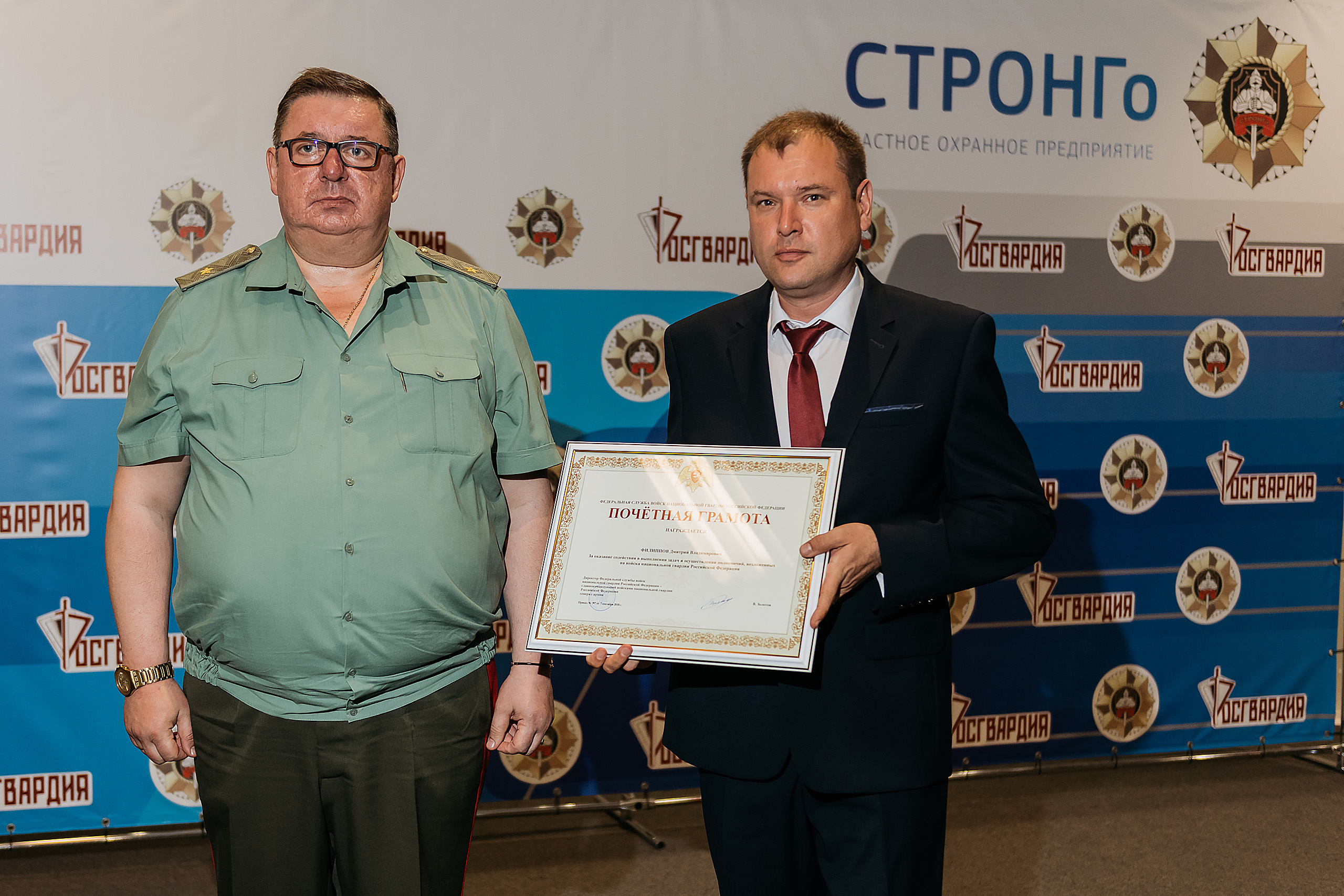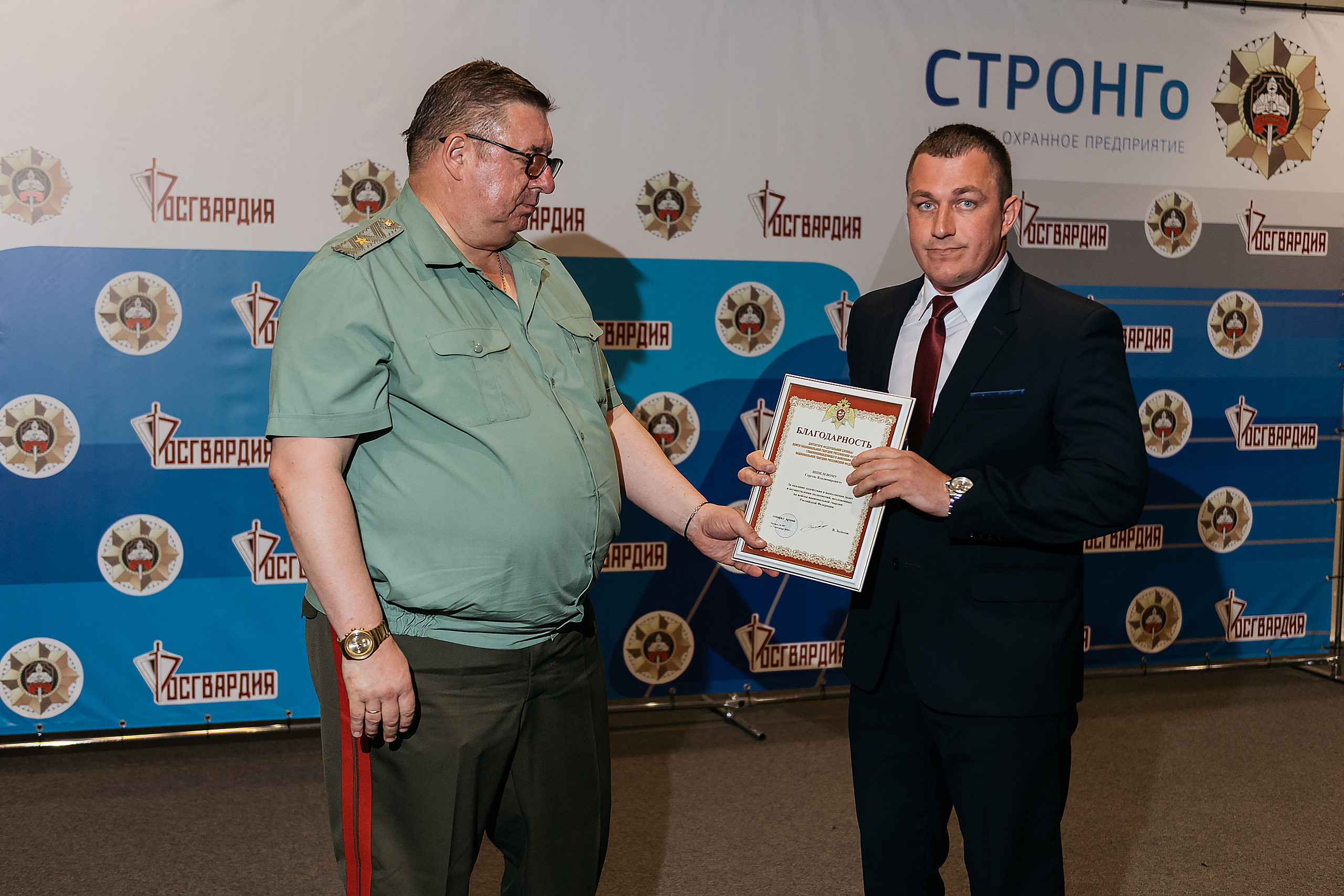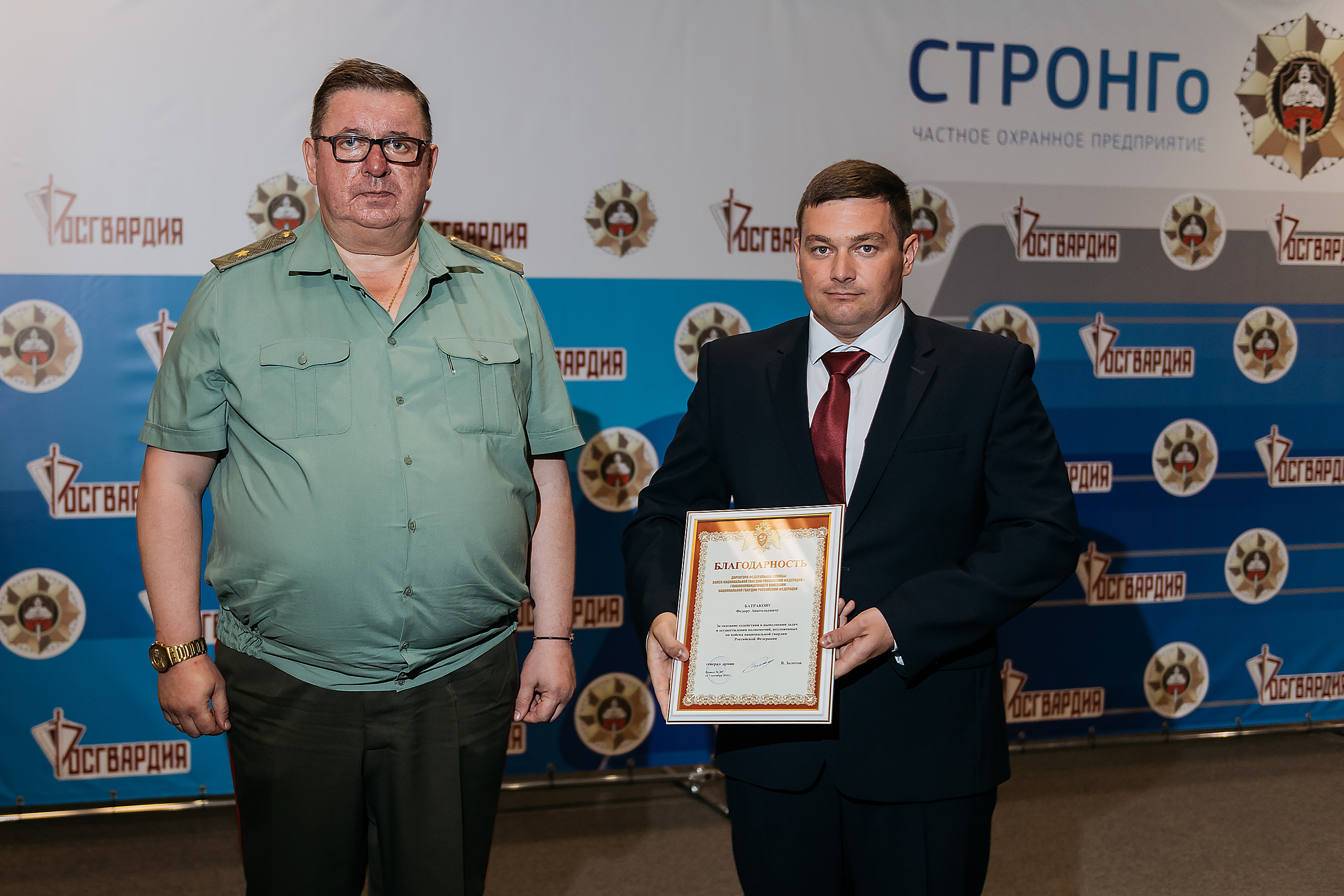 Наиболее отличившимся сотрудникам, таким как Владислав Троицкий, Кирил Назаревич, Алексей Веденский, Андрей Хомутинников генерал-майор полиции Анатолий Маликов вручил благодарственные письма Президента Российской Федерации, а в ходе своего выступления он подчеркнул важность дальнейшего сотрудничества Росгвардии и компании «СТРОНГо» в области обеспечения безопасности при проведении культурно-массовых и спортивно-зрелищных мероприятий.