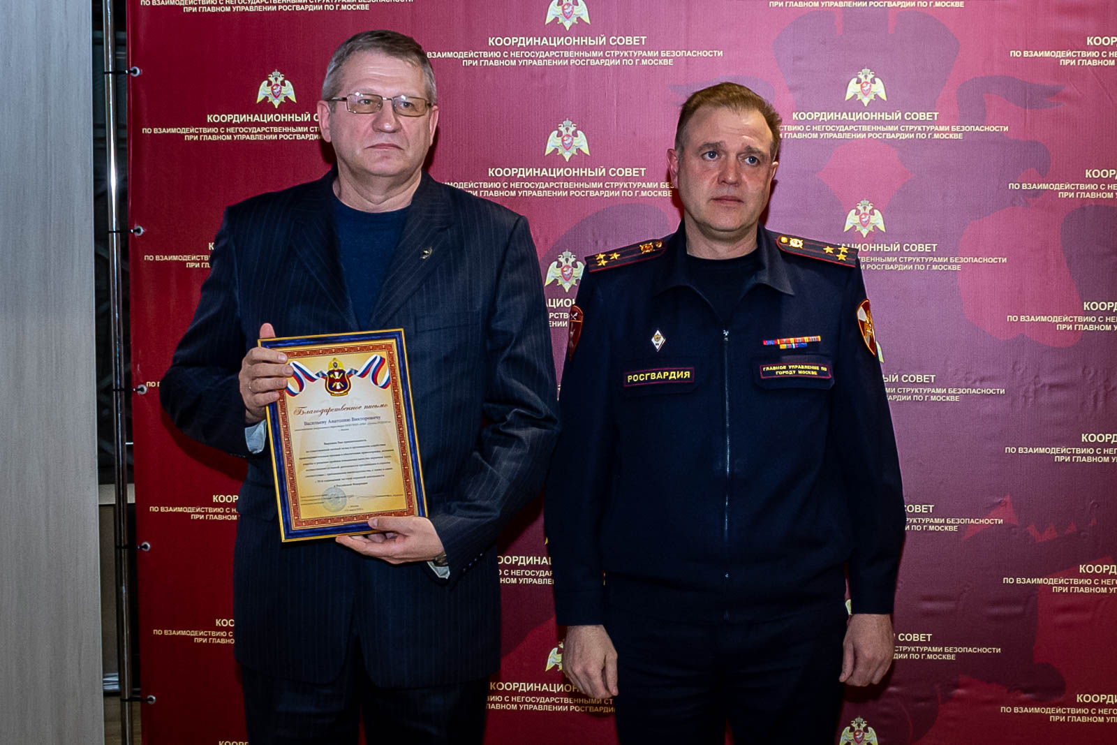 В завершение заседания ряду представителей охранного сообщества были вручены благодарственные письма за существенный вклад в организацию содействия правоохранительным органам в обеспечении правопорядка и активное участие в решении проблем повышения качества охранных услуг.