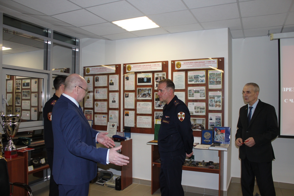 Перед началом заседания В.И. Медведев ознакомился с работой Единой Дежурной части нижегородских частных охранных организаций и экспозицией Нижегородского Музея частной охраны.