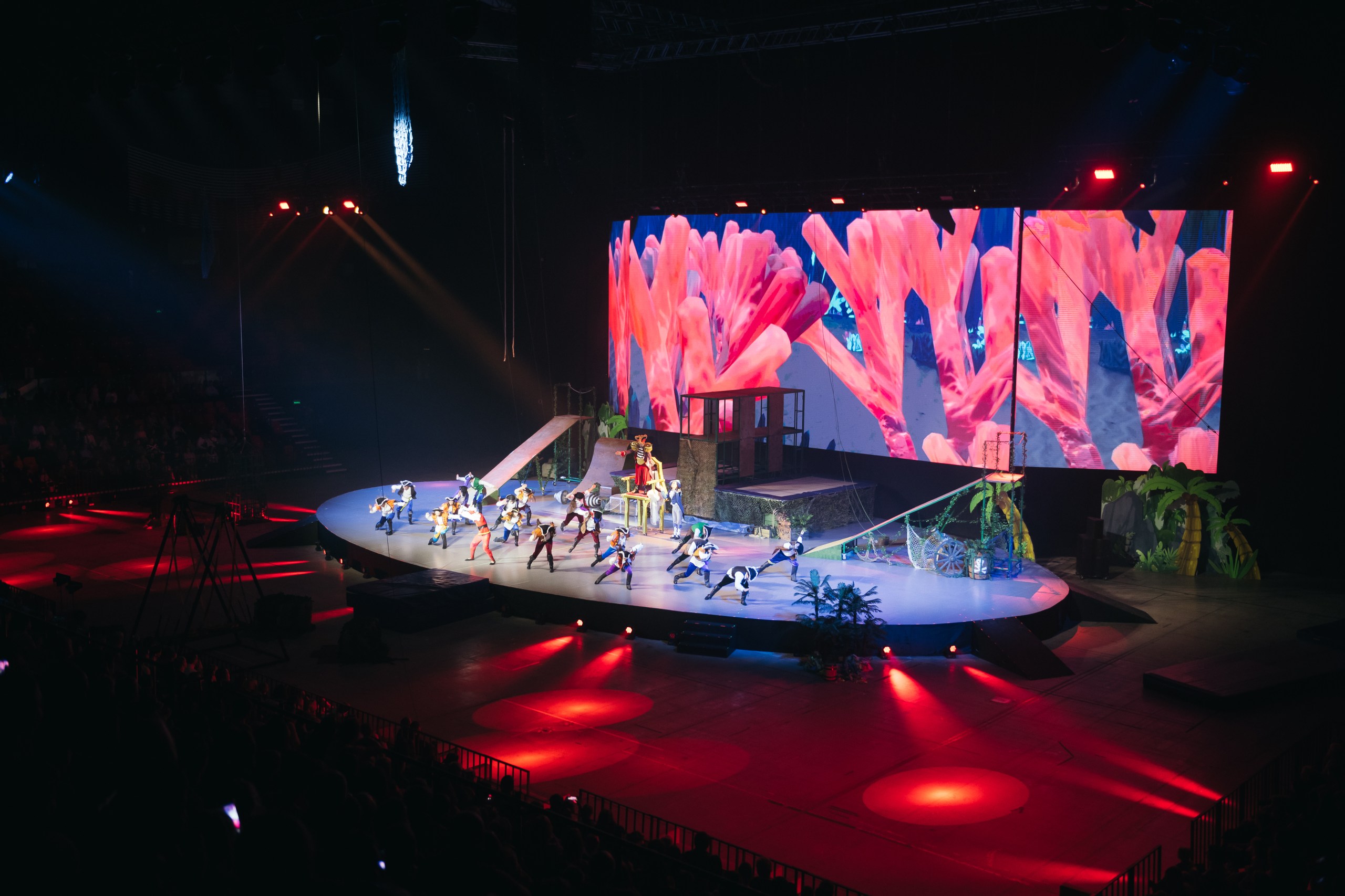 Дворец гимнастики Ирины Винер-Усмановой в праздники встретил гостей ярким шоу «Пираты и затерянный остров». Главные герои шоу отправились в увлекательное путешествие и попали на затерянный остров, который расположен далеко от цивилизации и хранит много интересных секретов. Главный из них – пещера, в недрах которой, спрятан артефакт, обладающий необычной и очень могущественной силой. Сюжетная линия, насыщенная неожиданными поворотами, в сочетании с фантастическими спецэффектами, абсолютно новым уровнем звука, масштабными декорациями, огненными всплесками и водными стенами, банжи-джампингом, номерами титулованных гимнасток, акробатов, каскадеров и танцоров, никого не оставила равнодушным. Благодаря эффектам с проекционной графикой, ярким стилизованным костюмам, интерактиву с залом и качественному музыкальному сопровождению, вы почувствуете себя неотъемлемой частью настоящей новогодней сказки!