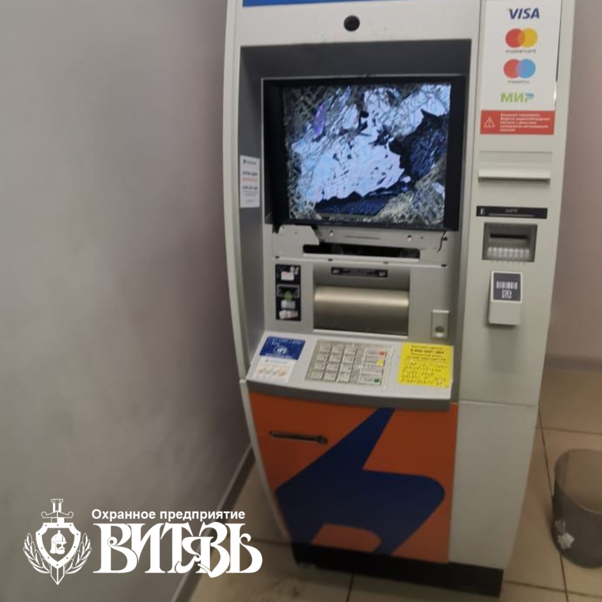 Мужчина выбил дверь, ведущую внутрь помещения, а затем разбил монитор банкомата. Гневаться на аппарат у мужчины причин не было.