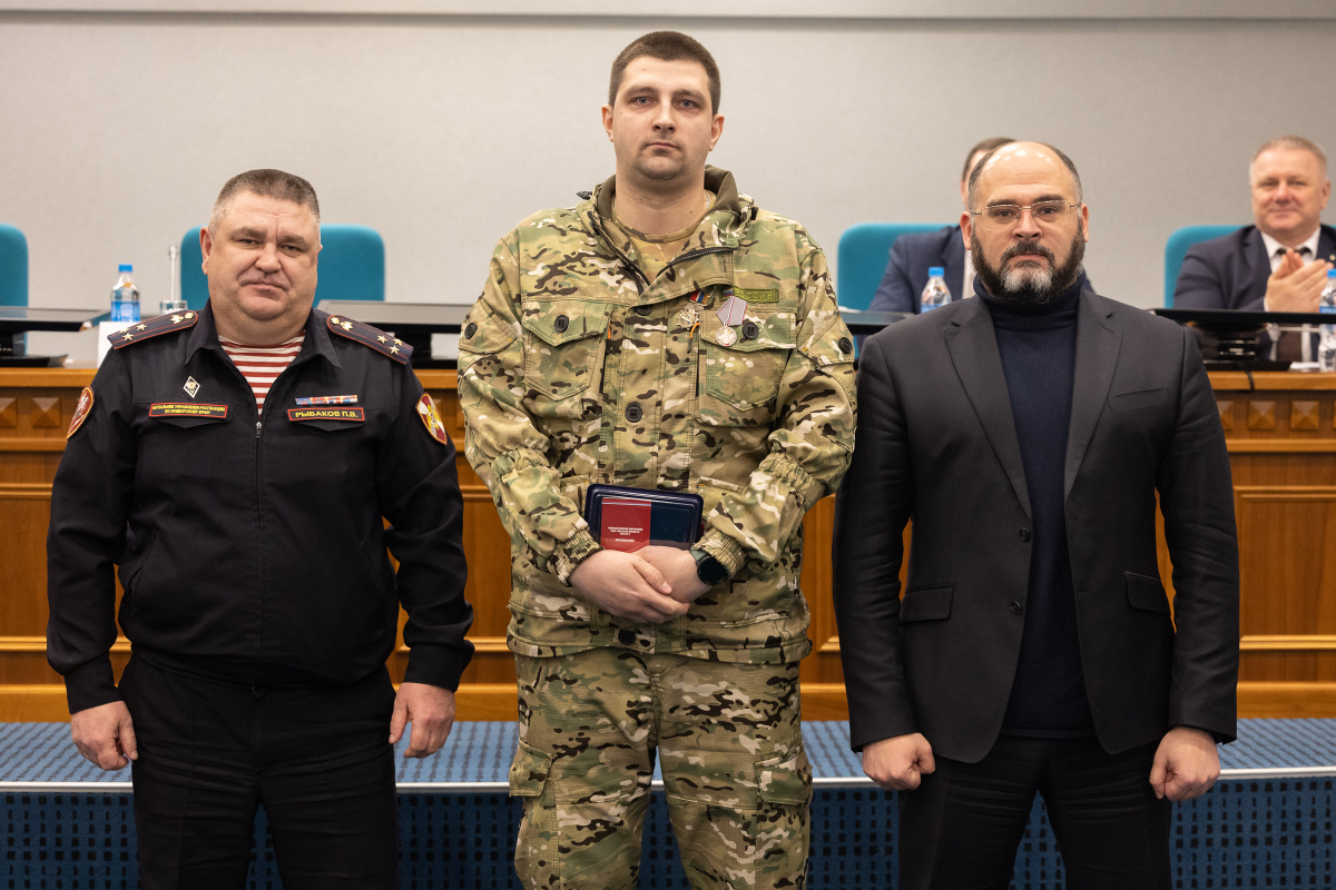 Петр Рыбаков и Константин Шестаков провели процедуру награждения Медалью «За охрану объектов в зоне специальной военной операции» и памятным знаком «Владивосток – город воинской славы».