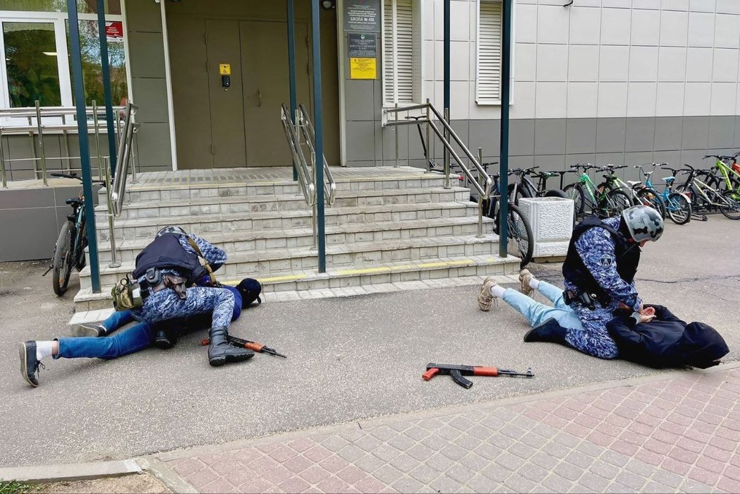 Отрабатывались два сценария. Первый — захват образовательного учреждения вооруженными людьми. Второй — обнаружение и обезвреживание взрывного устройства, пишет МК.