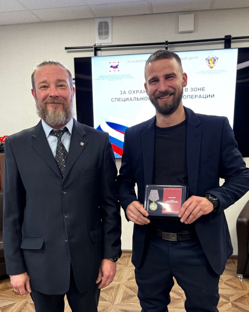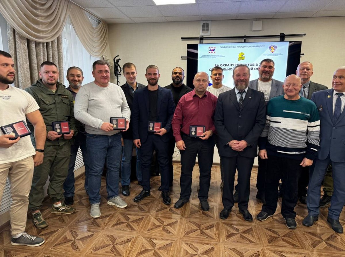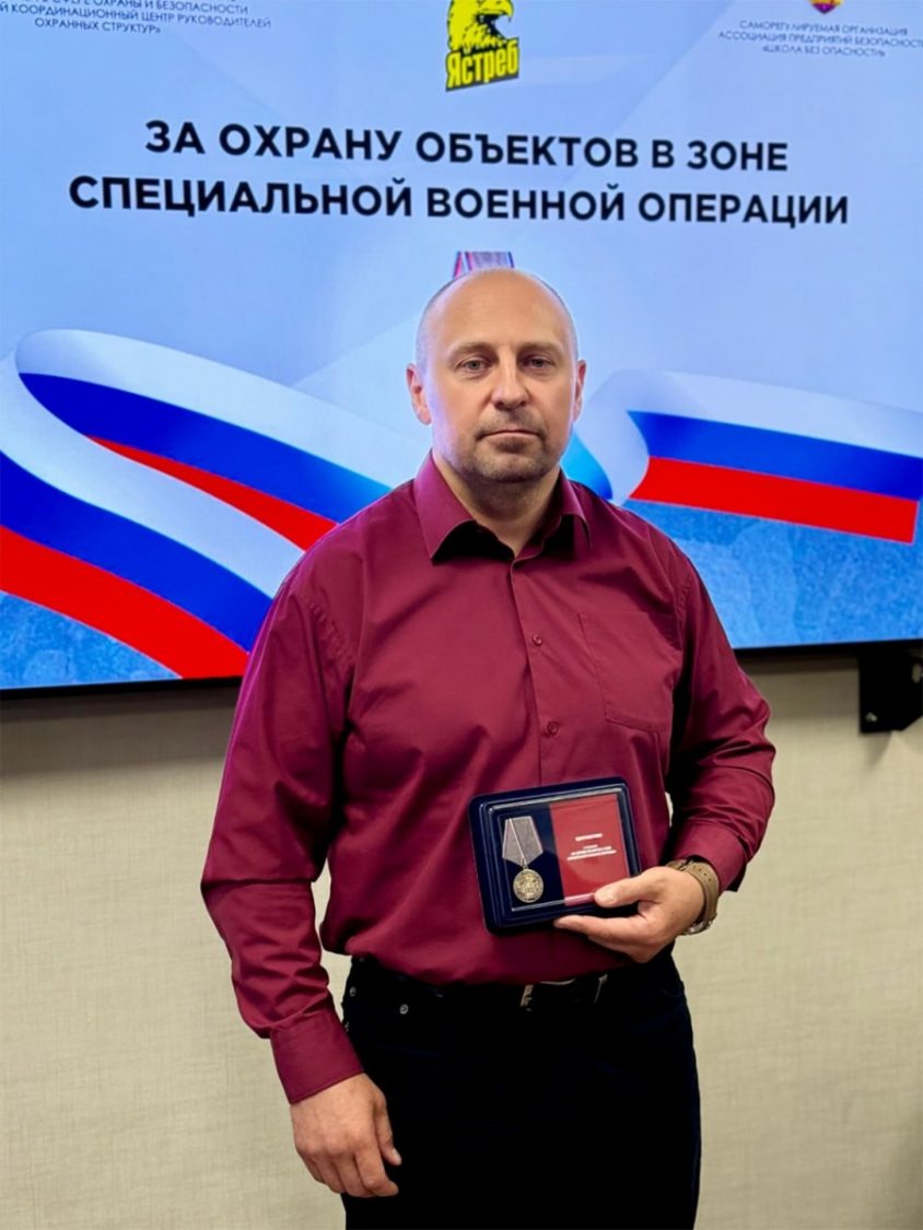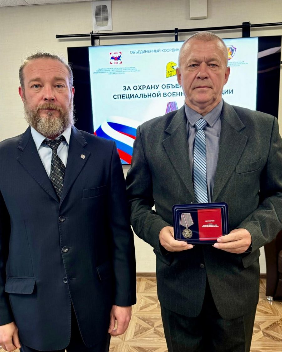 В минувшую пятницу в Торгово-Промышленной Палате Смоленской области директор ООО «ЧОП «Ястреб-С» Юрий Фроленков и председатель РООР ФКЦ Смоленск Игорь Пушкарев в торжественной обстановке вручили сотрудникам ООО «ЧОП «Ястреб-С», которые с сентября 2022 года охраняют учебные заведения в Запорожской области и Луганской Народной Республике, медалей «За охрану объектов в зоне СВО».