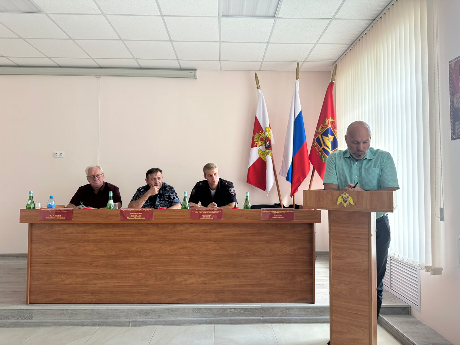Под председательством ВРИО начальника Управления Росгвардии по Брянской области полковника полиции Михаила Михайловича Николаева состоялось заседание координационного совета по вопросам частной охранной деятельности. В совещании приняли участие представители регионального МВД, департамента образования и науки, частных охранных организаций, действующих на территории Брянской области, а также член президиума ФКЦ РОС Владимир Карпешин и председатель правления РООР ФКЦ «Брянск» Максим Ракович.